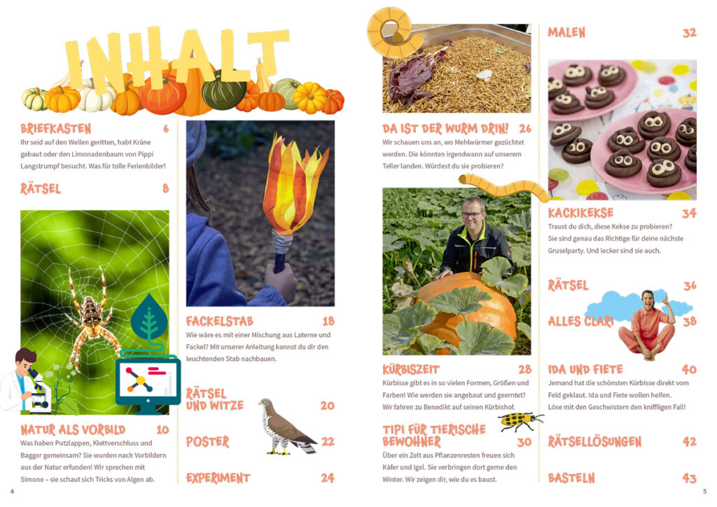 - Rätsel Durch knifflige Rätsel, spannende Experimente, DIY und leckere Rezepte können Kinder die Natur spielerisch und mit allen Sinnen erleben.