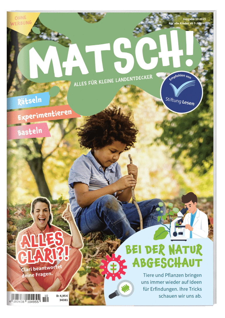 - Entdecker Das MATSCH! Kindermagazin zeigt Kindern, was unsere heimische Natur und Umwelt zu bieten hat.